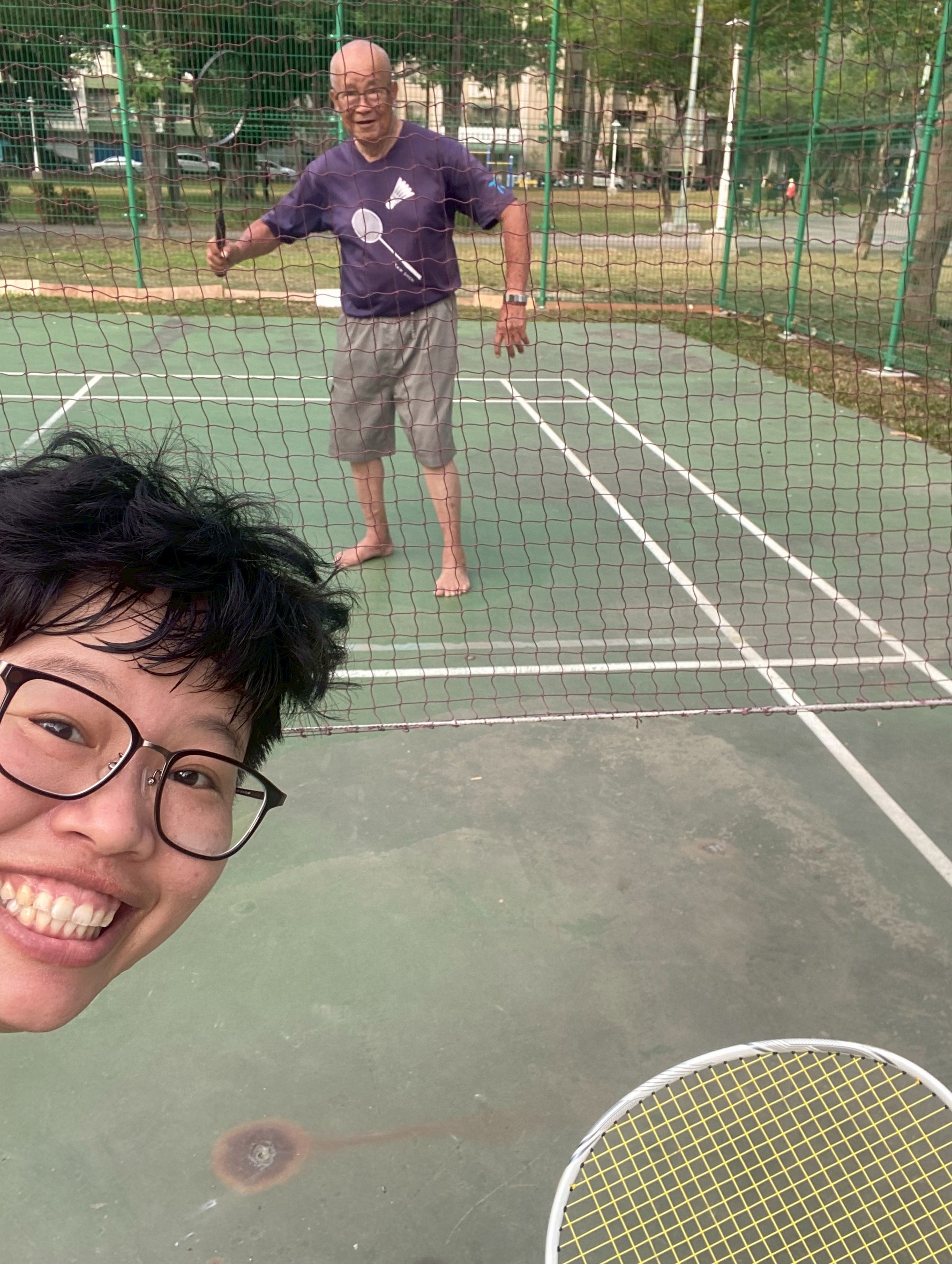 伯伯日常生活充滿活力跟趣味,休閒就是打羽球還有打電動~ 每天清晨6點他都會準時前往附近的室外球場打羽毛球。