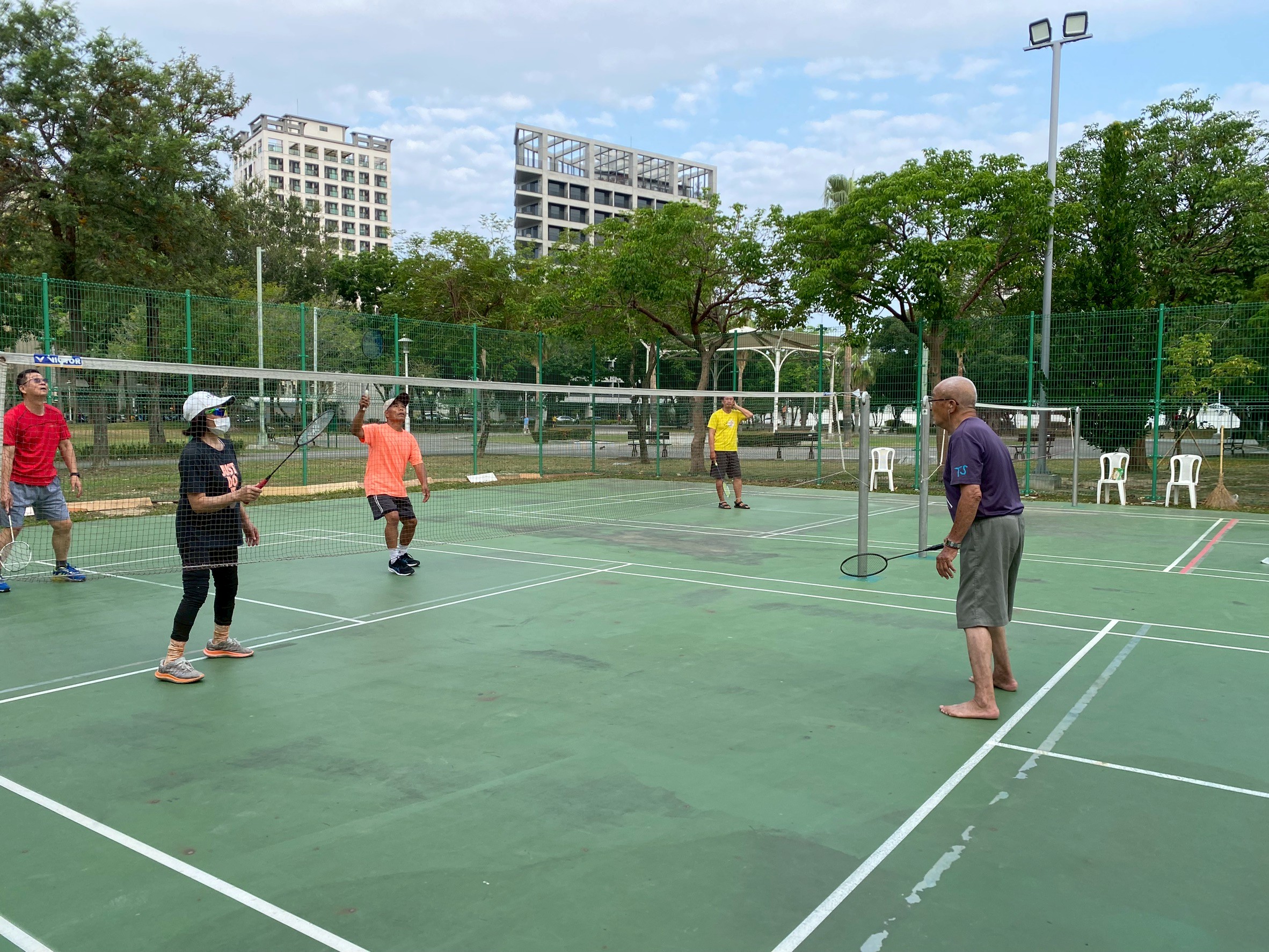 場上聚集了許多叔叔阿姨、大哥大姐,不乏是在上班前抽空來運動的中壯年人。場面熱鬧,球拍來回交錯的聲音充滿節奏感,甚至還出現了四打四的趣味畫面。
